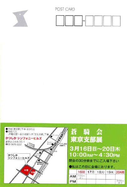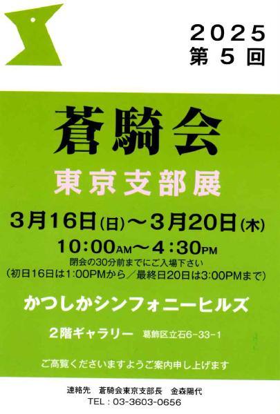 2025年3月16日(日)~20日(木) 10:00AM~4:30PM