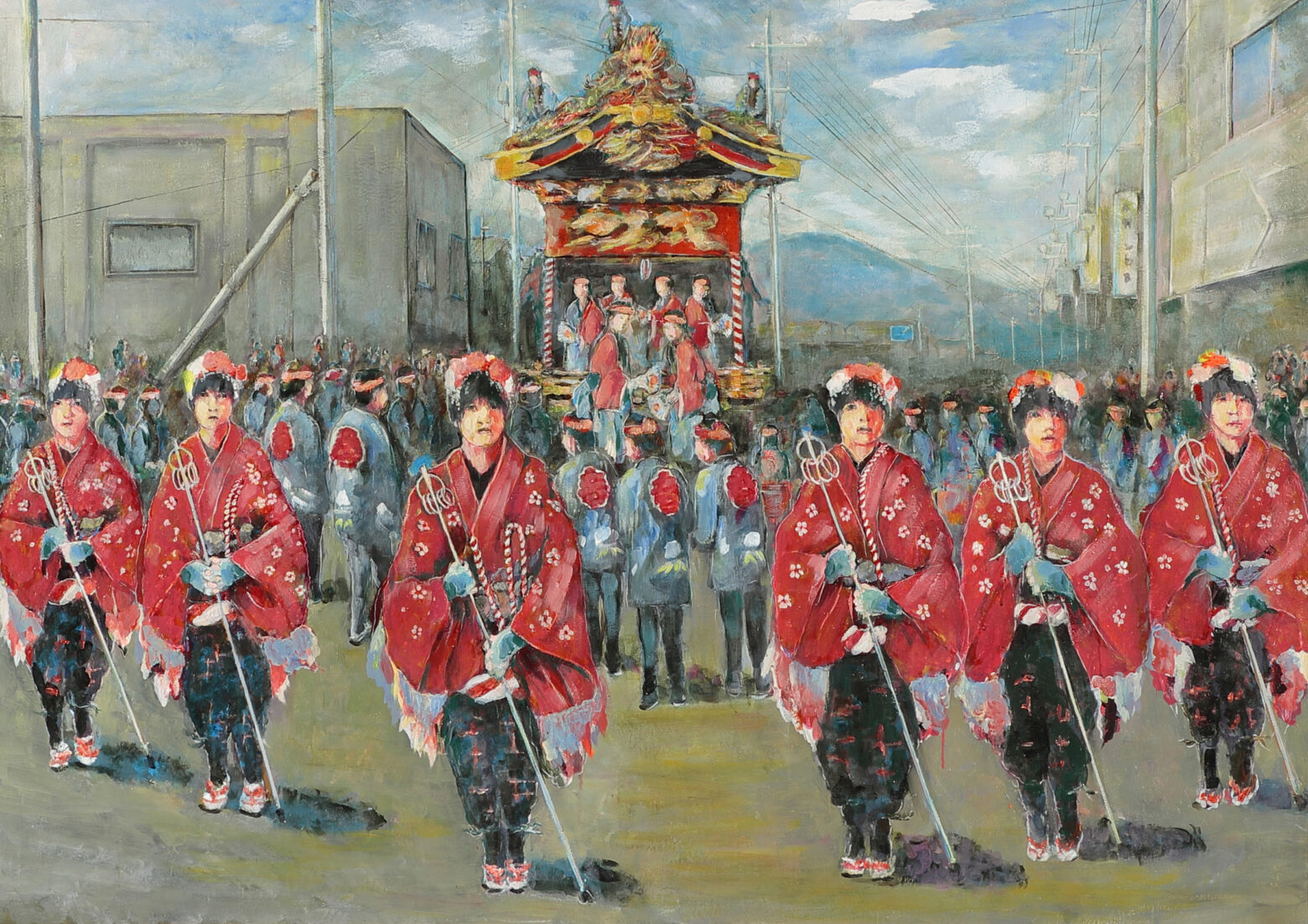 「春祭り」 山車巡行先導する金棒つき少女 (A)